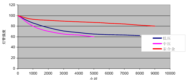當紫外線照射強度衰減到起初的70%以下時,就認為該紫外燈到達其使用壽命。一般紫外線燈管的使用壽命