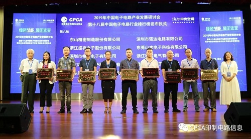 2019年第十八屆中國電子電路行業(yè)排行榜頒獎典禮盛大舉行